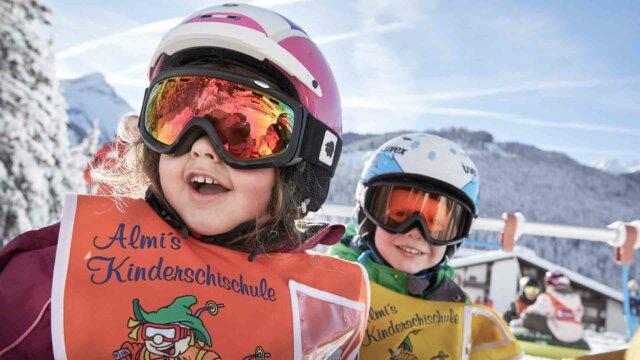 Stress- und angstfrei Skifahren lernen aus Spaß an der Freude: Unser Maskottchen Almi machts möglich. In Almi’s Kinderskischule kümmern sich rund 20 Kinder-Skilehrerinnen und -lehrer exklusiv um die Gäste vom Almhof Family Resort & SPA. Schon ab 2 Jahren lernen die Almhof-Kinder spielerisch Skifahren.